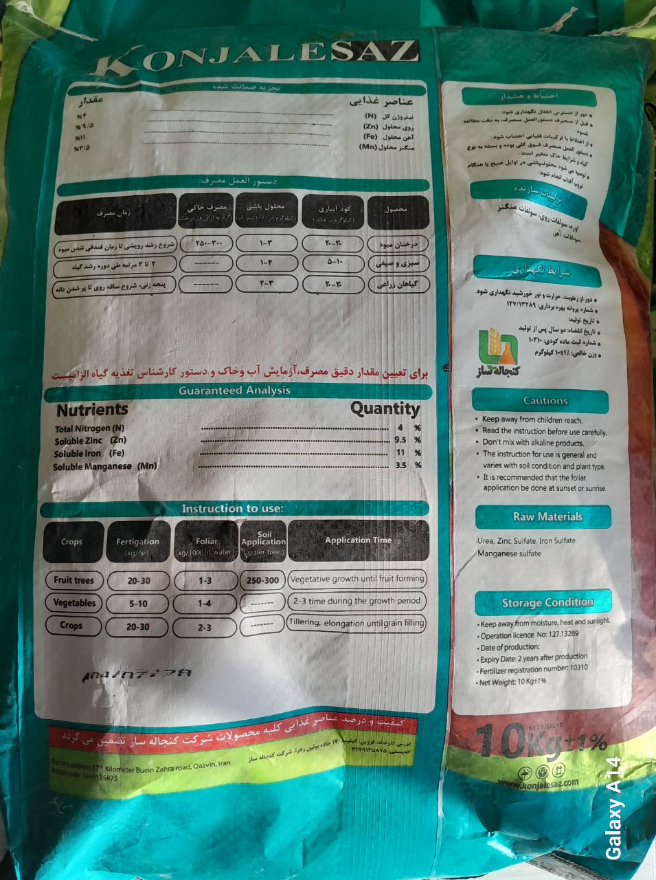 حاوی اوره.سولفات روی.سولفات منگنز و سولفات آهن