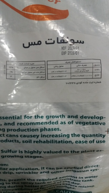 کاربرد در باغبانی و کشاورزی جهت تکمیل نیاز غذایی گیاه به عنصر مس